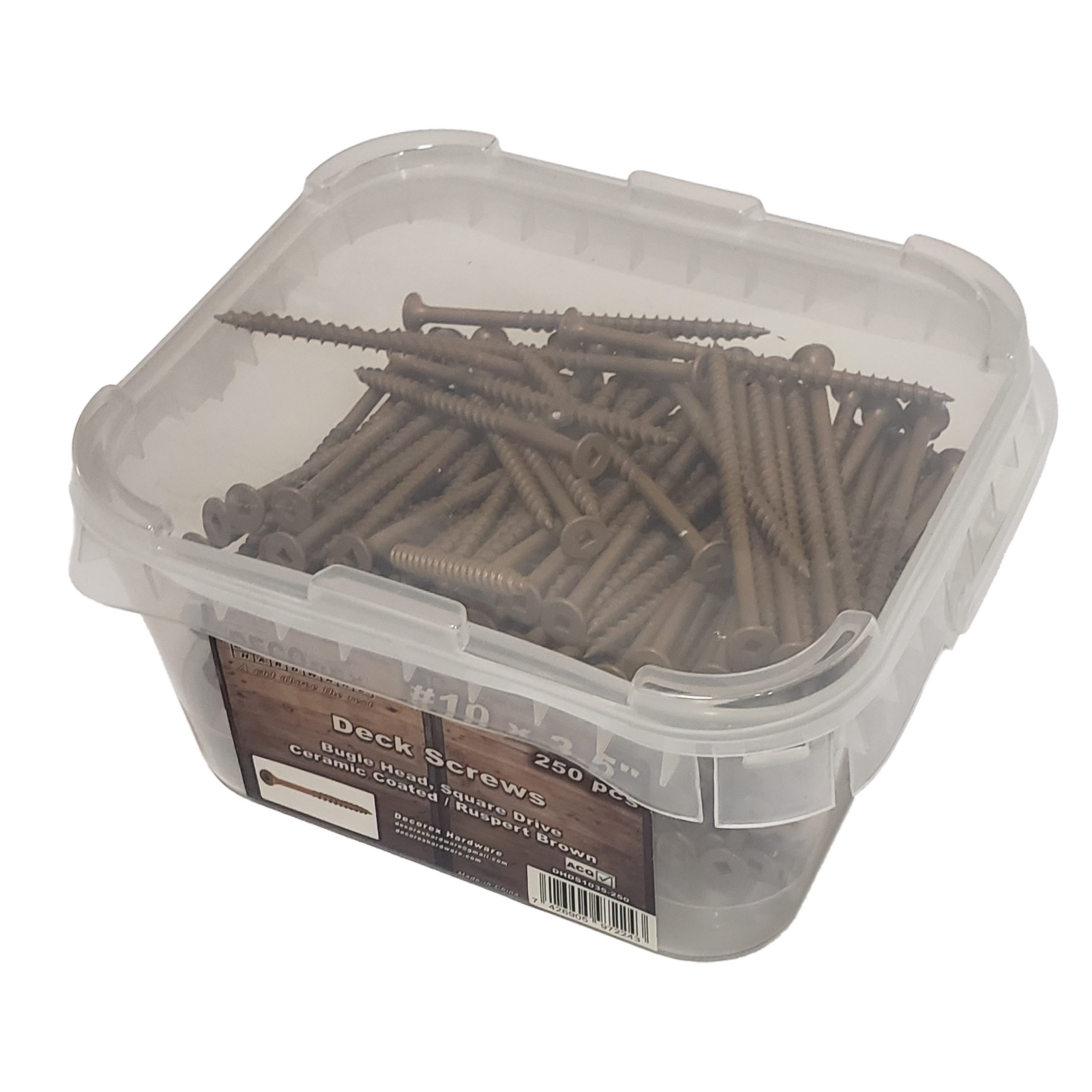 Decorex Hardware #10 x 3 1/2″ Deck Screws | Square Drive | Bugle Head | Brown Ruspert | 250pcs Box