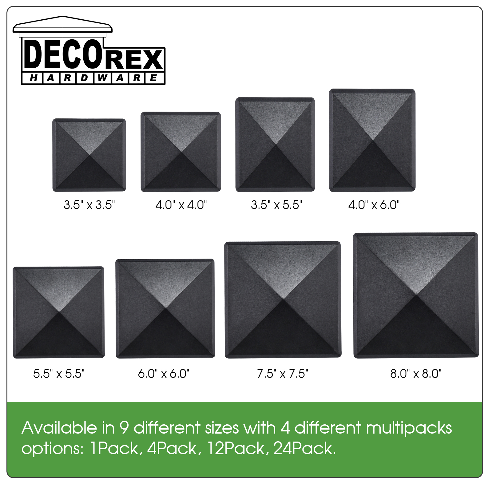 •Pyramid Post Caps are marked “Decorex Hardware” on one side of the Cap.