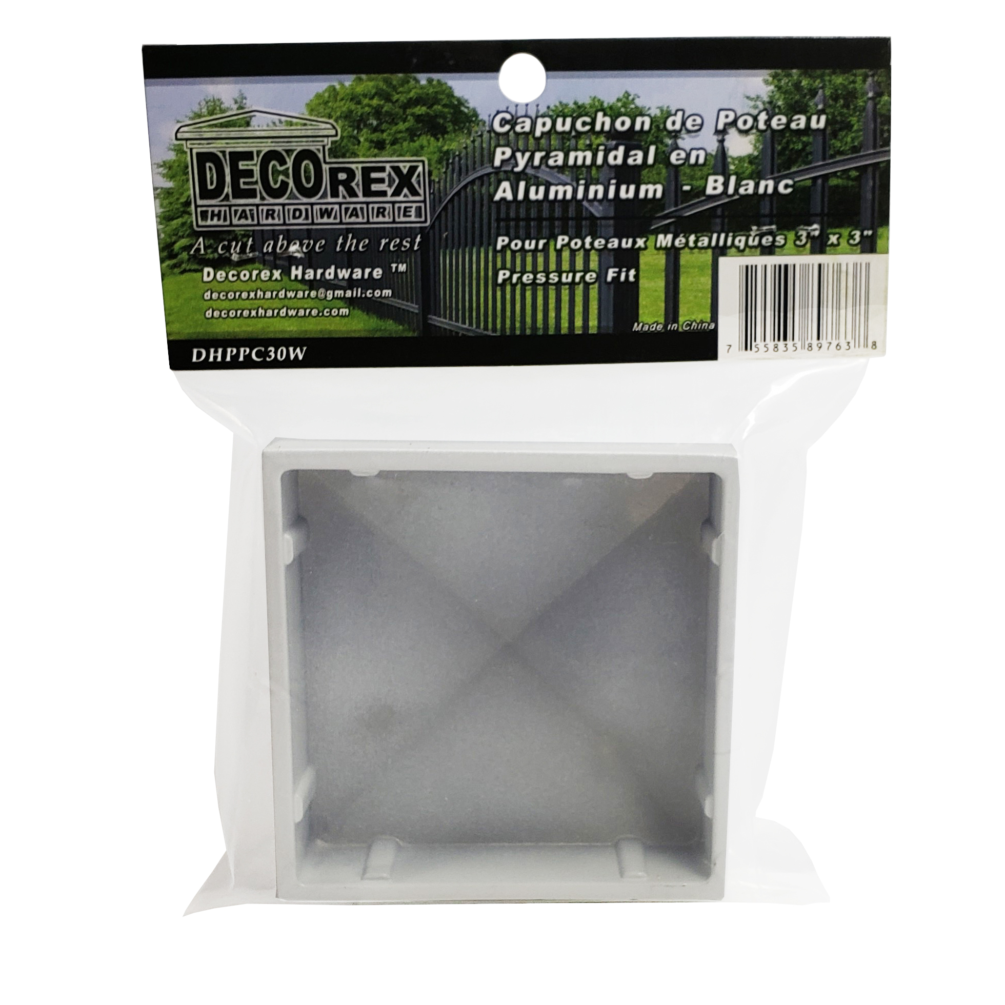 Decorex Hardware Aluminium Pyramid Post Cap for 3″ x 3″ Metal Posts – Pressure Fit – White