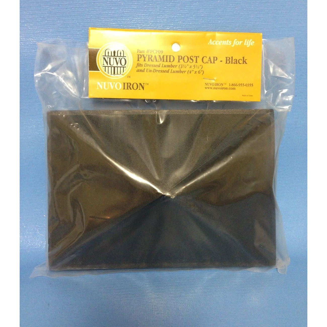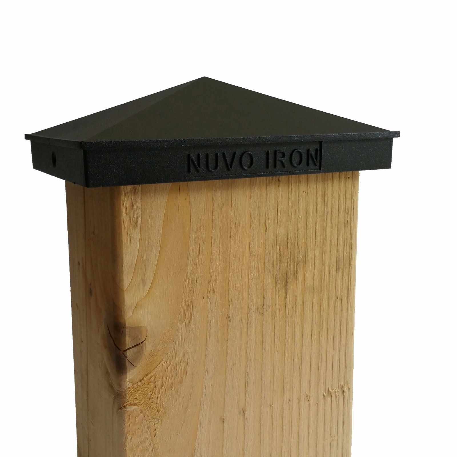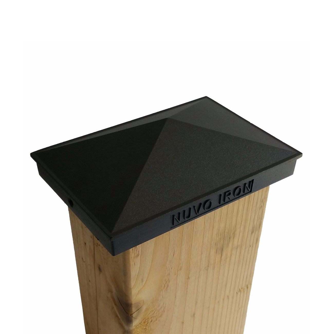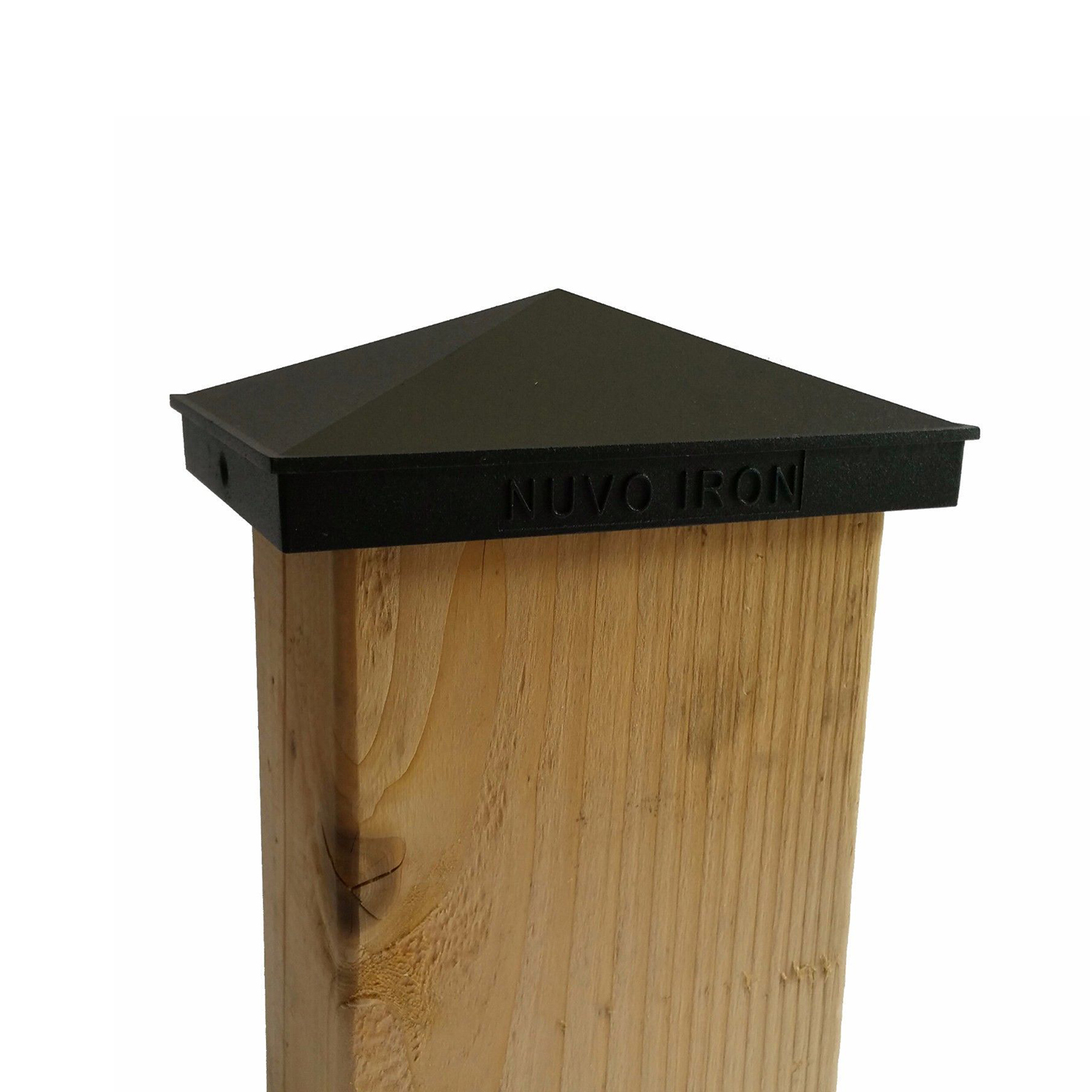 Pyramid Post Caps are marked “Nuvo Iron” on both sides of the Cap.