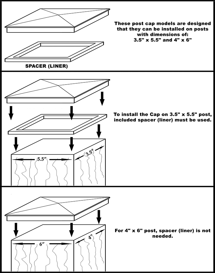 To install the Cap on 3.5″ x 5.5″ post, included spacer ( liner ) must be used.