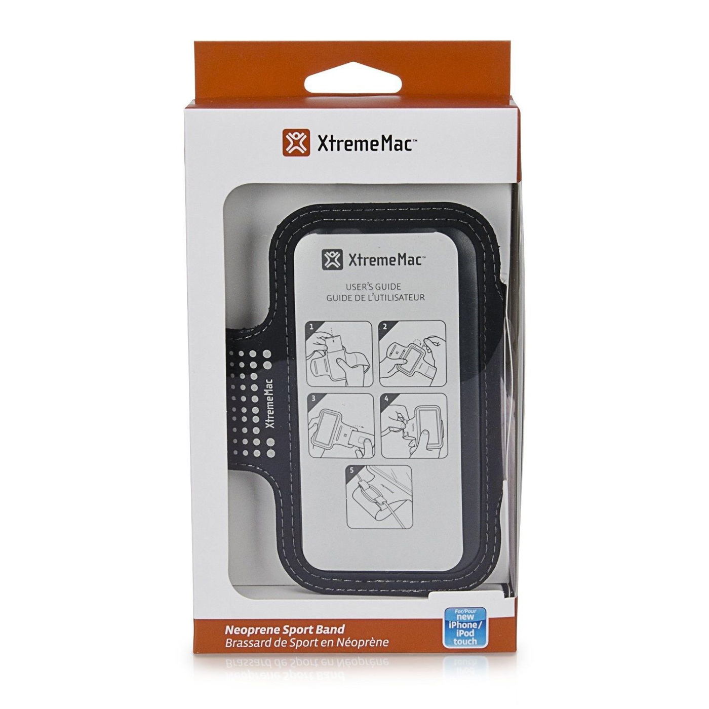 Lightweight Neoprene Sport Band for new iPhone 5/5S/5C and iPod touch (5th gen) devices XtremeMac’s Sport Band is a high-performance lightweight armband designed for the active user. Constructed with soft, durable lycra and neoprene, it’s designed to protect while keeping your device securely in place and safe from moisture. The unique anti-glare mask allows the user to easily insert and remove the device while offering full access to the touch screen. The Sport Band also includes a removable earbud cord wrap and is adjustable to fit a variety of arm sizes.